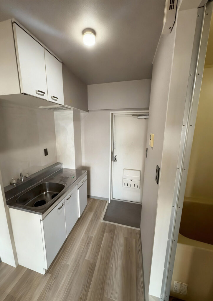 キッチン・玄関まわりについても、床材や内装の統一により空間のつながりが生まれ、動線がすっきりと整理されました。